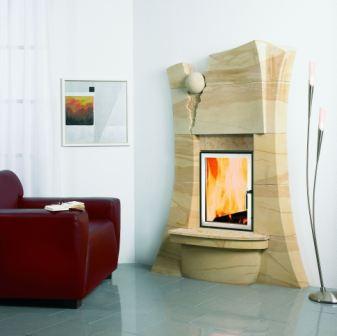 kamin der neuen Generation. Dieser Heizkamin aus Sandstein